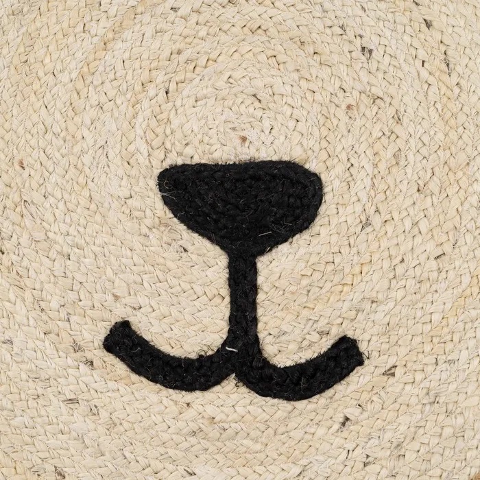 Fabricada en yute natural combinado con blanco y negro y detalles simulando la carita deun león.100% yute.