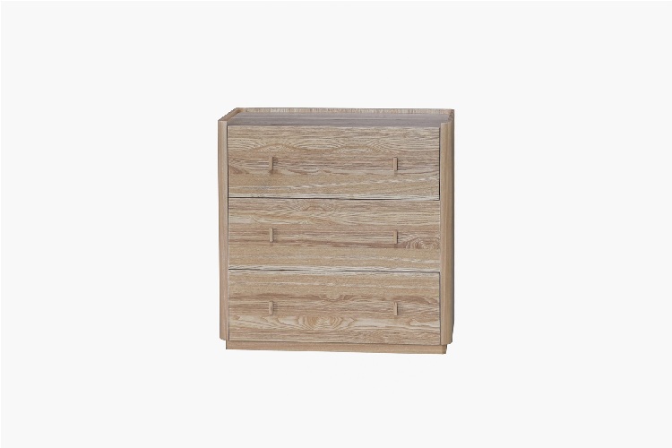 Esta cómoda de tres cajones destaca por su diseño nórdico de líneas rectas, pensado para crear espacios serenos, funcionales y atemporales. Fabricada en DM de alta calidad y revestida con chapa de madera de fresno, combina resistencia, durabilidad y una estética natural muy actual.