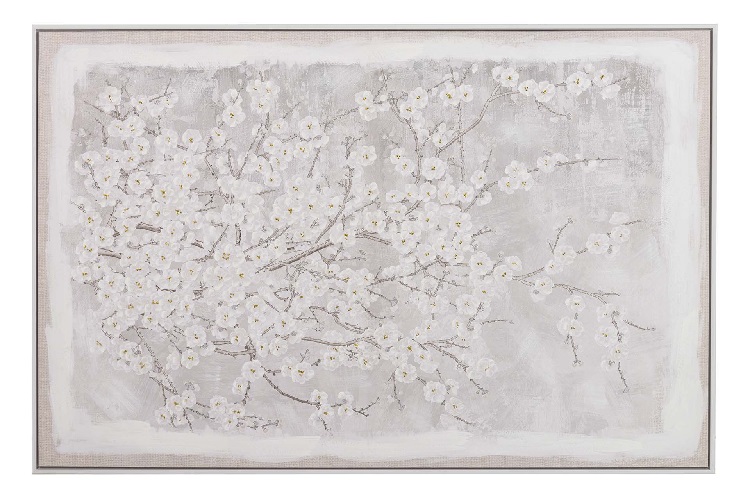 Cuadro Rama Almendro Gris y Blanca 120x4x80 cm)