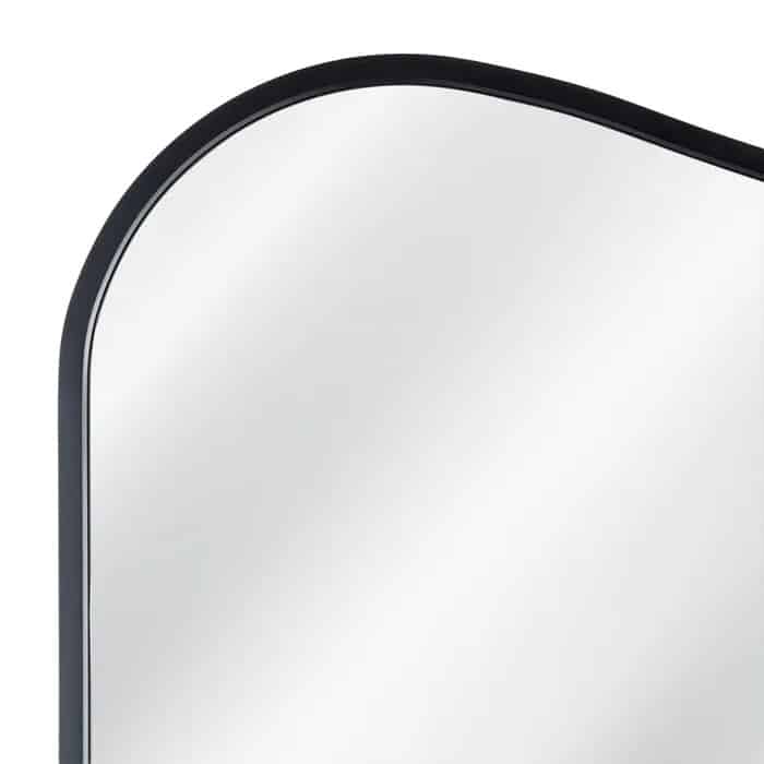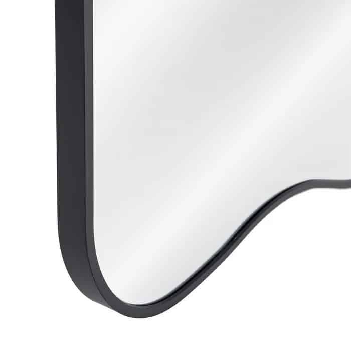 Nuestro espejo vestidor Butterfly combina líneas suaves y detalles decorativos para crear una pieza con personalidad propia. Su estructura de aluminio acabado en negro presenta esquinas redondeadas que suavizan su diseño, mientras que la onda decorativa en el lado superior aporta un toque distintivo y elegante.