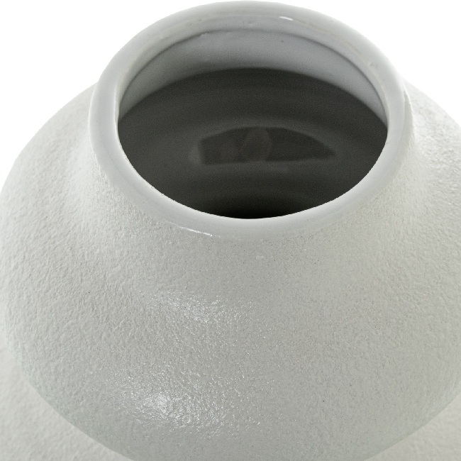 Este jarrón decorativo de cerámica blanca brillo es el complemento perfecto para aportar sofisticación y estilo a tu hogar. Su forma cilíndrica, combinada con un tacto rugoso y delicadas molduras de diseño moderno, crea una pieza decorativa equilibrada y atemporal.