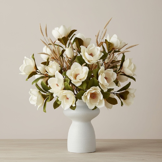 Gracias a su acabado en blanco brillante, refleja la luz de manera sutil, aportando luminosidad y sensación de amplitud a espacios como el salón, el recibidor, el dormitorio o incluso zonas de trabajo. Ideal para usar solo como elemento decorativo o acompañado de ramas secas o artificiales.