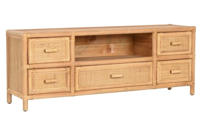 Mueble auxiliar/TV de madera de abeto y ratán natural