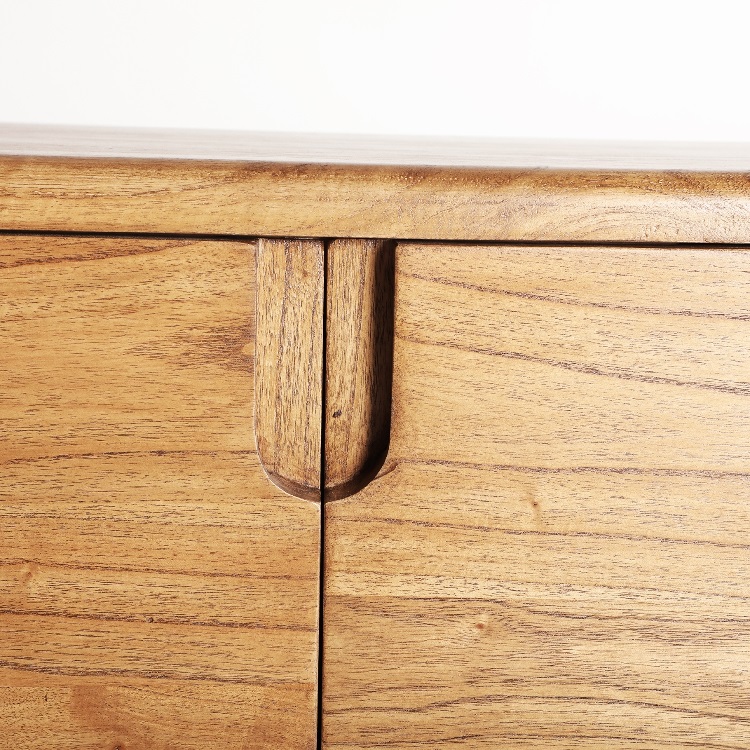 Mueble auxiliar-tv de cuatro puertas en madera maciza de mindi acabado en natural. Estilo nórdico.