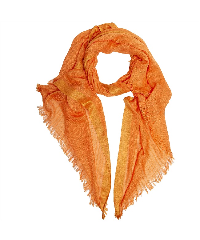 Este foulard suave en mezcla de algodón y viscosa es un complemento elegante y versátil, ideal para aportar un toque de color y sofisticación a cualquier look. Su tono naranja melocotón transmite calidez y frescura, perfecto para combinar con estilos casuales o más refinados.