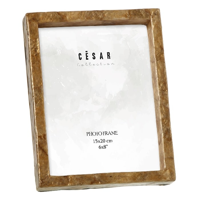 Portafotos en nácar beige de líneas rectas. Estilo clásico.