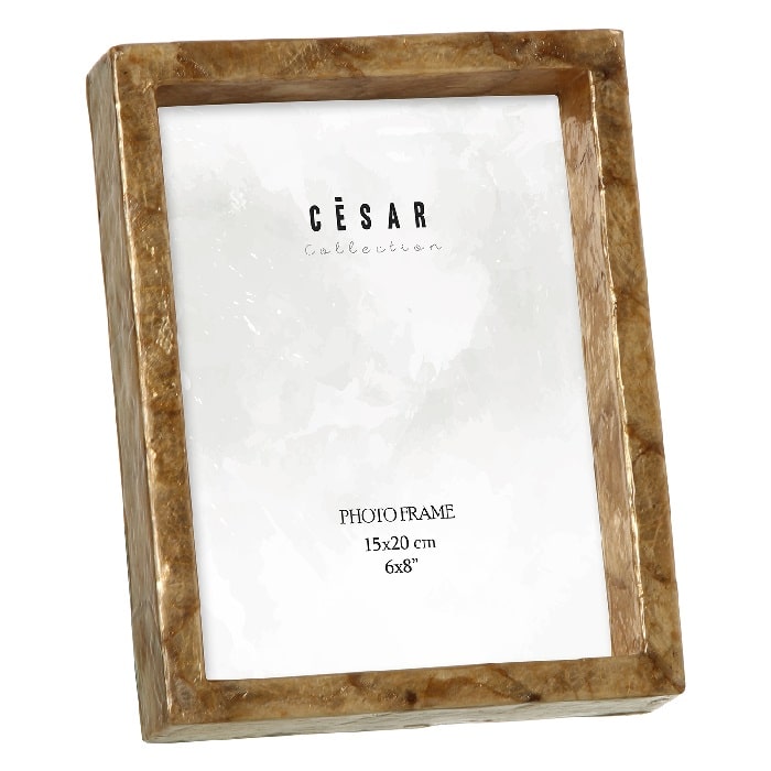 Portafotos en nácar beige de líneas rectas. Estilo clásico.