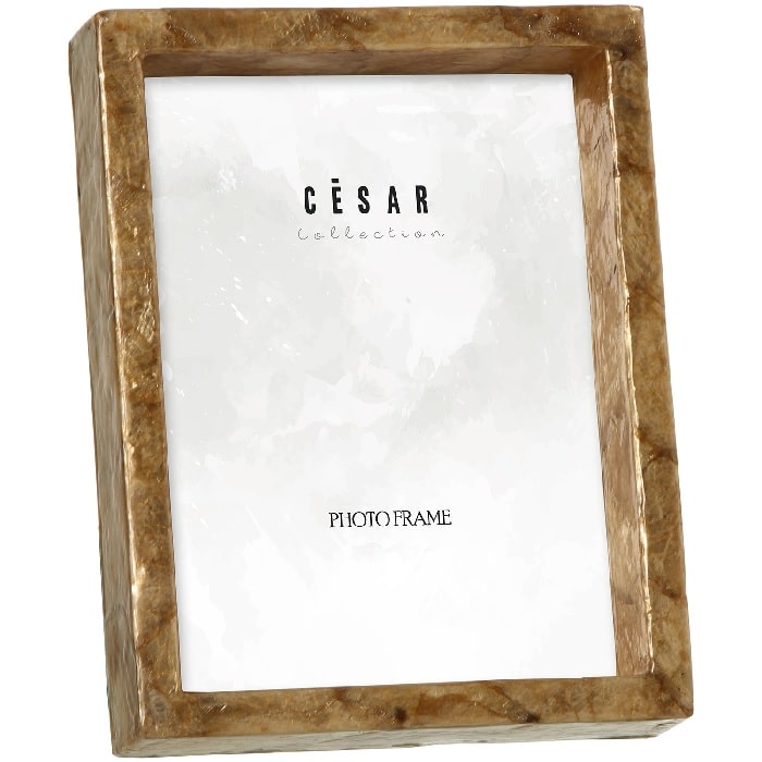 Portafotos en nácar beige de líneas rectas. Estilo clásico.