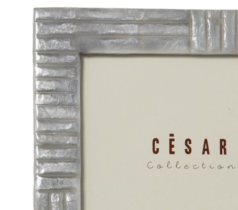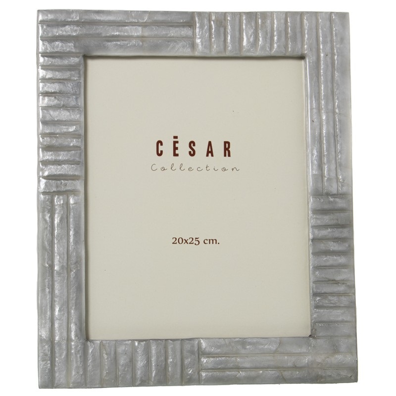 Portafotos en nácar gris y marco con líneas paralelas.. Medida interior 20×25 cm.
