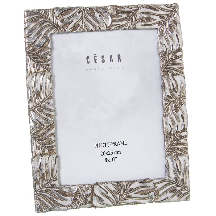 Portafotos Resina Plata Vieja Marco Hojas Grabadas (20x25cm)