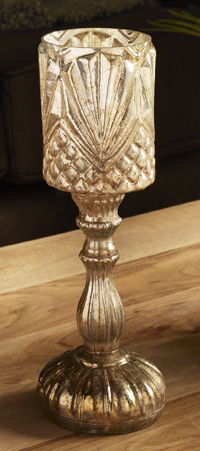 Portavelas en cristal grabado acabado en champagne.