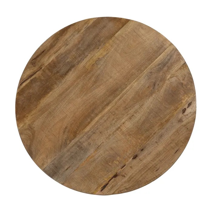 Este set de dos mesas de centro tipo nido es una opción práctica y decorativa que aporta calidez y personalidad al salón. Los tableros están fabricados en madera maciza de mango natural, destacando por sus vetas, tonalidades y textura auténtica, mientras que las bases redondas tubulares en hierro negro refuerzan su estilo rústico e industrial.