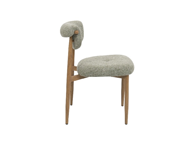 El asiento y respaldo acolchados ofrecen un alto nivel de confort, ideal para el uso diario. El tapizado en chenilla gruesa color verde refuerza la sensación de calidez y aporta una textura agradable que invita a disfrutar del espacio con calma.