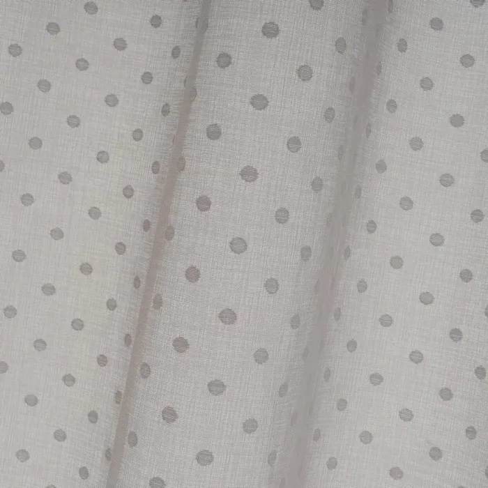 Dale un toque delicado y sofisticado a cualquier estancia con este visillo gris decorado con pequeños lunares bordados. Su diseño atemporal combina fácilmente con estilos clásicos, románticos, nórdicos o contemporáneos, aportando luminosidad y calidez al ambiente.