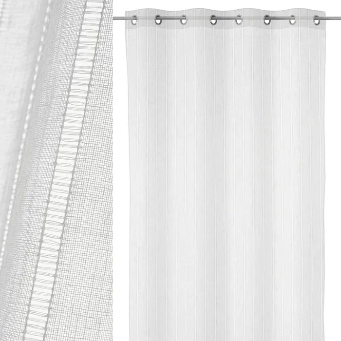 Su acabado superior con anillas cromadas facilita una instalación rápida y asegura una caída fluida y moderna, ideal para combinar tradición con funcionalidad actual. Gracias a su tejido ligero, estos visillos dejan pasar la luz natural creando una atmósfera cálida y acogedora en salones, dormitorios o comedores.