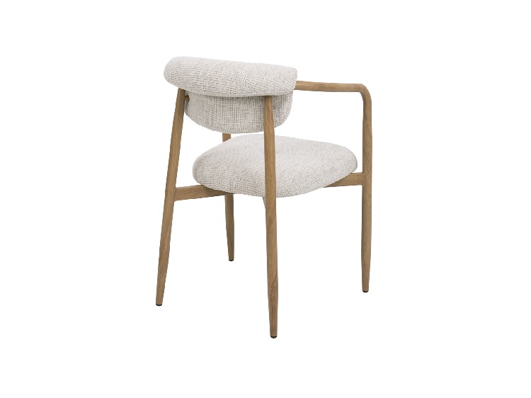 Los apoyabrazos integrados y el asiento y respaldo acolchados ofrecen un alto nivel de confort, ideal para el uso diario. El tapizado en chenilla gruesa color beige refuerza la sensación de calidez y aporta una textura agradable que invita a disfrutar del espacio con calma.