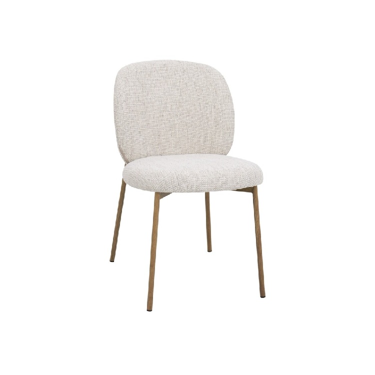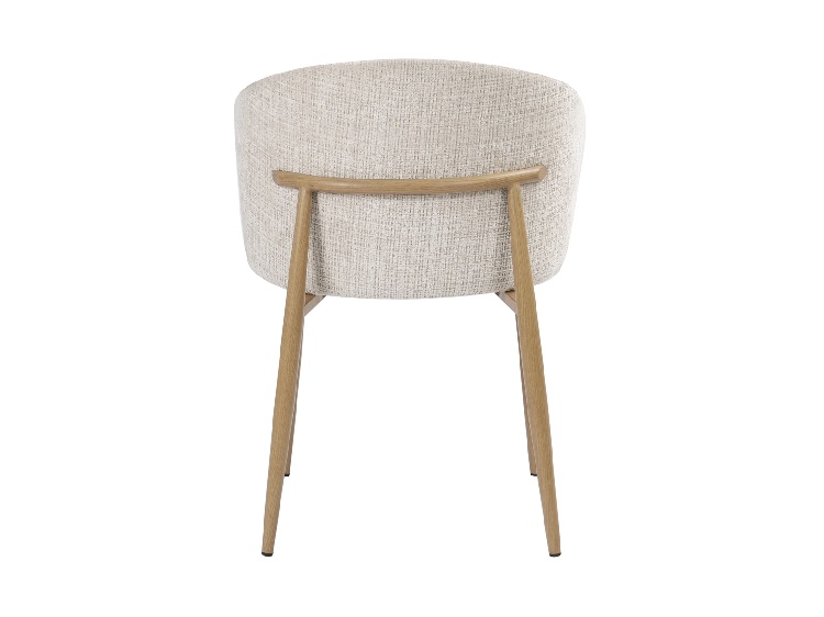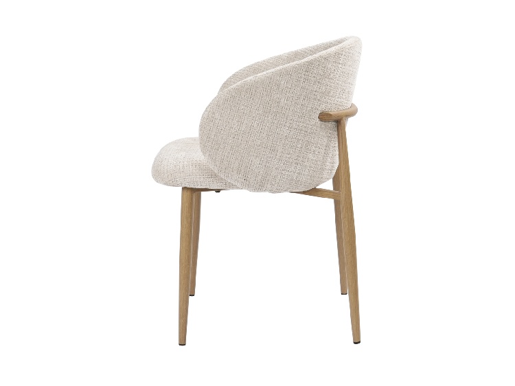 El asiento y respaldo curvo acolchados ofrecen un alto nivel de confort, ideal para el uso diario. El tapizado en chenilla color beige refuerza la sensación de calidez y aporta una textura agradable que invita a disfrutar del espacio con calma.