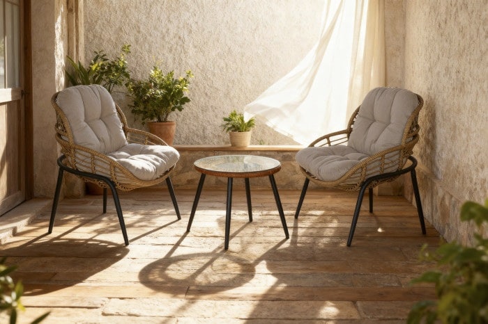 Un set pensado para quienes buscan muebles de exterior resistentes, modernos y fáciles de mantener.